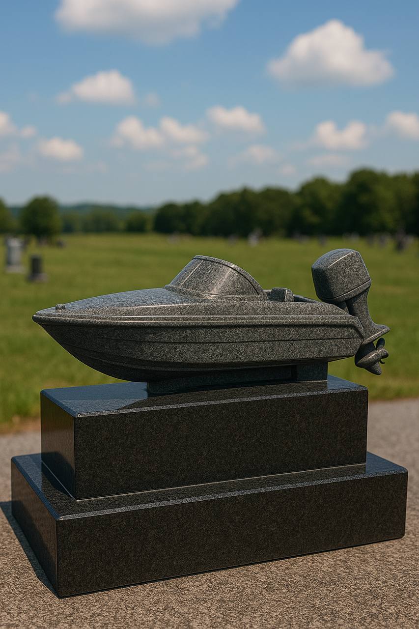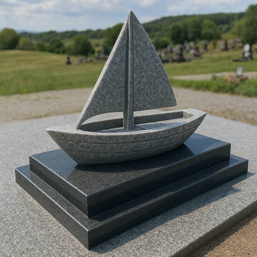 Човни та катери – це вже справжні скульптурні шедеври: надувні «Зодіаки», алюмінієві «Крим», дерев’яні човни чи сучасні пластикові катери з імітацією мотора Yamaha. Ми навіть робимо хвилі під човном і чайку на носі. Така атрибутика на пам’ятники для рибалок виглядає вражаюче на великих ділянках Таромського, Південного чи Правобережного кладовищ.