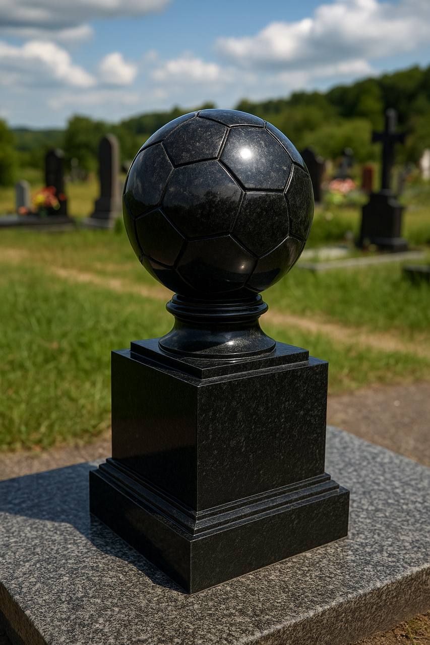 Коли людина жила спортом, звичайний пам’ятник здається порожнім — йому бракує руху, боротьби й того моменту тріумфу, за який усі любили чемпіона. Тому ми створюємо атрибутику на пам’ятники для спортсменів, яка буквально зупиняє час у камені: об’ємні футбольні м’ячі з чіткою текстурою панелей, боксерські рукавички зі шнурівкою, тенісні ракетки з натягнутими струнами, бігові кросівки з шипами та навіть штанги, що здаються важкими на дотик. Кожна деталь вирізьблена вручну з відборового габро та лабрадориту, тому через десятки років виглядатиме так само яскраво й динамічно.