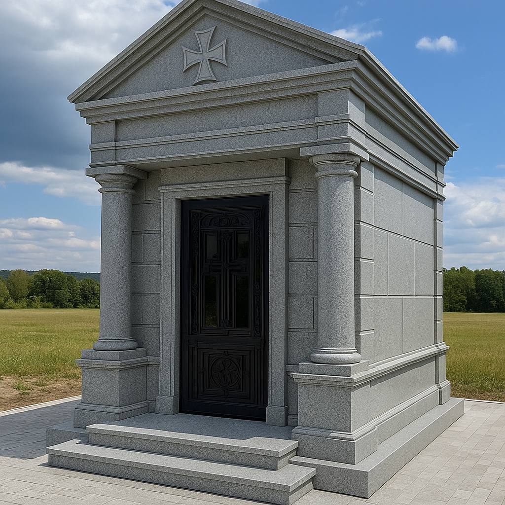 Кожен родинний склеп ми проєктуємо й будуємо індивідуально. Можна обрати надземну каплицю з колонами й куполом, напівзаглиблений варіант із гранітними стінами над землею або повністю підземний склеп із розкішним входом. Розмір – від компактного склепу для родини на 4–6 місць до великої усипальниці на 12–24 поховання і більше.